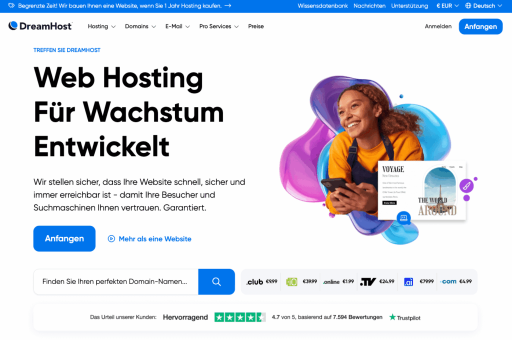 In unserer ausführlichen DreamHost Erfahrung erfährst du alle Details zu Performance, Support und Preisen. Wir zeigen dir konkret, für welche Projekte sich der Anbieter eignet und wo die Grenzen liegen. Bis zu 75% auf die erste Vertragslaufzeit sparst du über die Links in dieser Review.